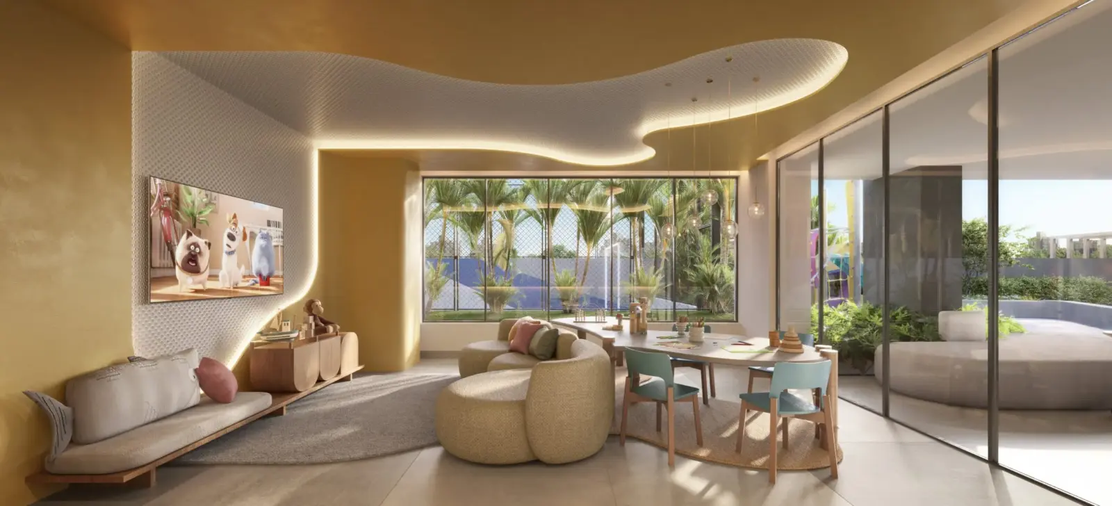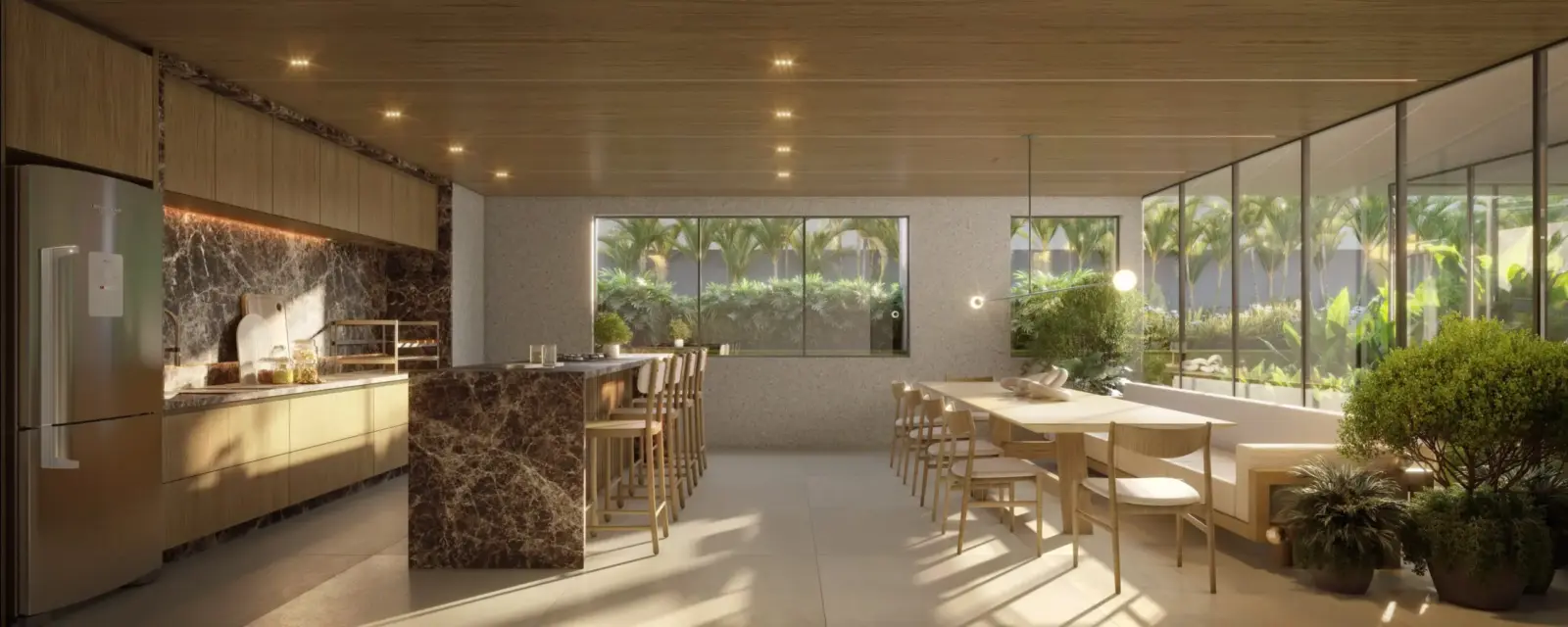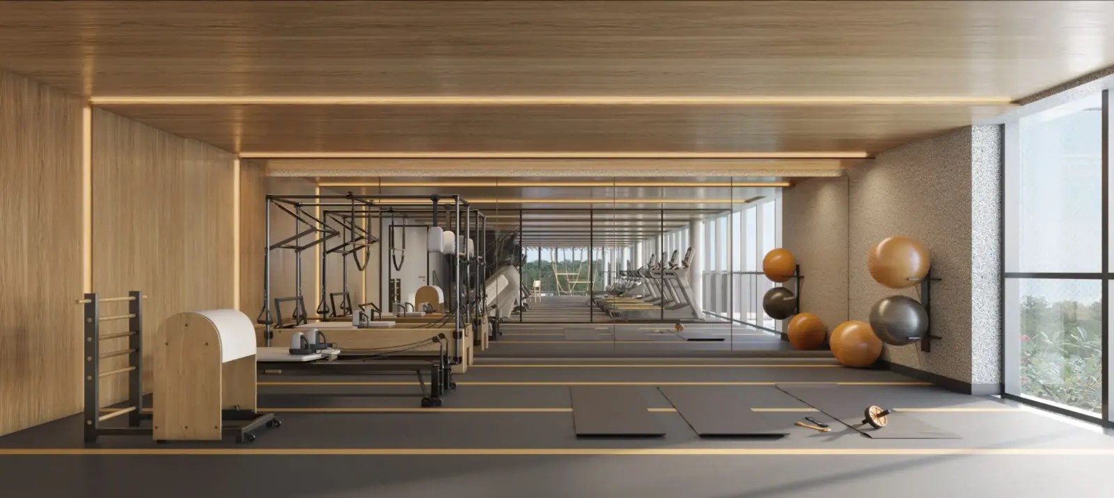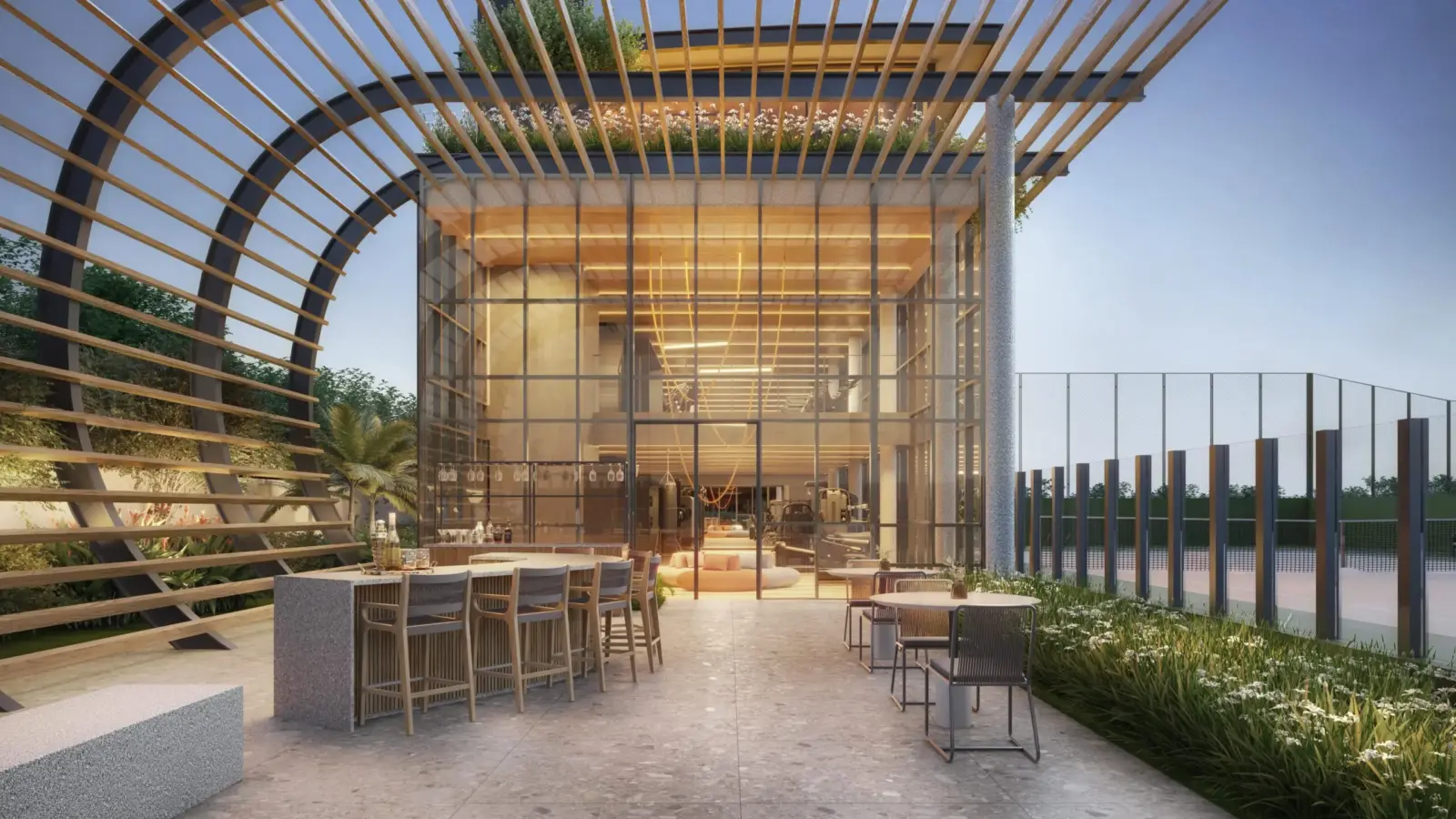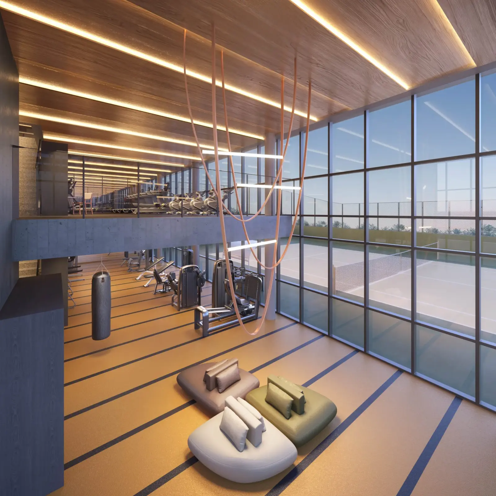 O projeto também traz um clube privativo de alto padrão, inspirado em tendências internacionais de lifestyle residential clubs, com infraestrutura completa de lazer que contempla quadras de tênis profissional e de beach tennis, academia equipada, spa com sauna e hidromassagem, piscina climatizada, salão de festas, playground e espaços gourmet integrados — ambientes concebidos para bem-estar, convivência e entretenimento.