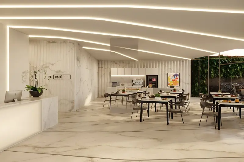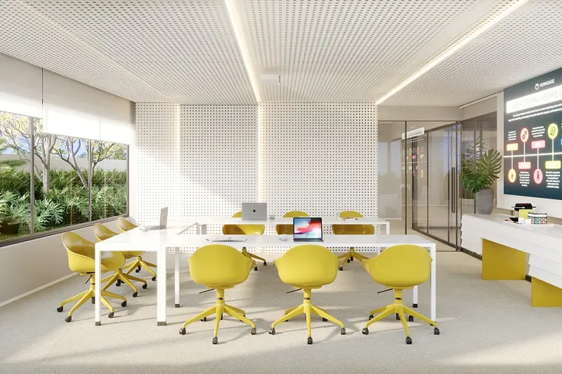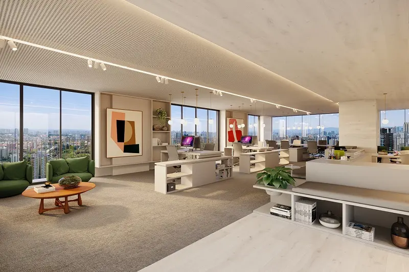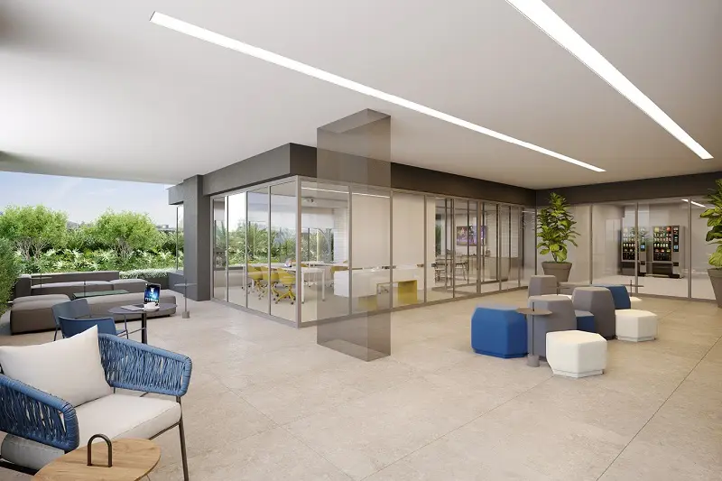 O projeto se destaca por seu design moderno, tecnologia integrada e infraestrutura funcional, com espaços corporativos que priorizam iluminação natural, ventilação eficiente e ambientes flexíveis para atender às demandas do mercado de trabalho contemporâneo. A composição inclui áreas comuns como auditório, salas de reunião, espaços de convivência e serviços de apoio, proporcionado uma experiência completa para colaboradores e visitantes.