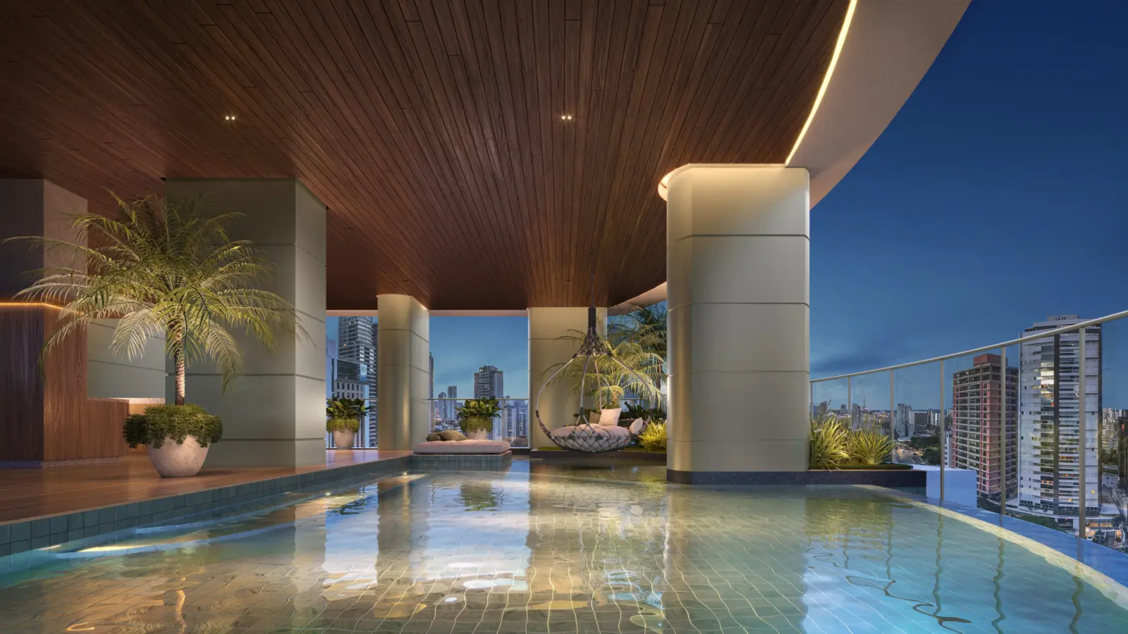 O Opus Gyro Praça do Sol incorpora um Sky Resort de lazer elevado, distribuído em vários pavimentos com piscina climatizada de borda infinita, deck molhado, academia completa, salão de festas, espaço gourmet, wine bar e espaços sociais integrados — proporcionando qualidade de vida e experiências de convivência premium.